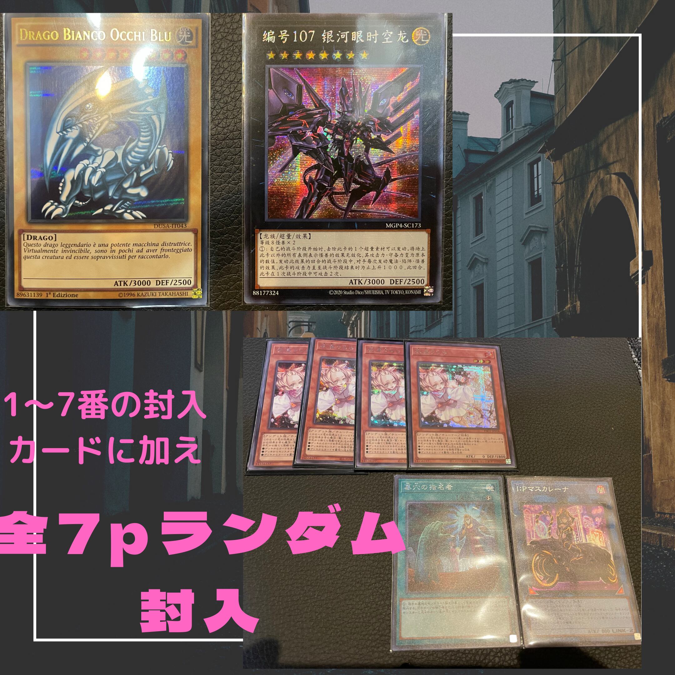 お選びいただいた1番から7番のカード番号の中に下記カードを無料封入させていただきます。